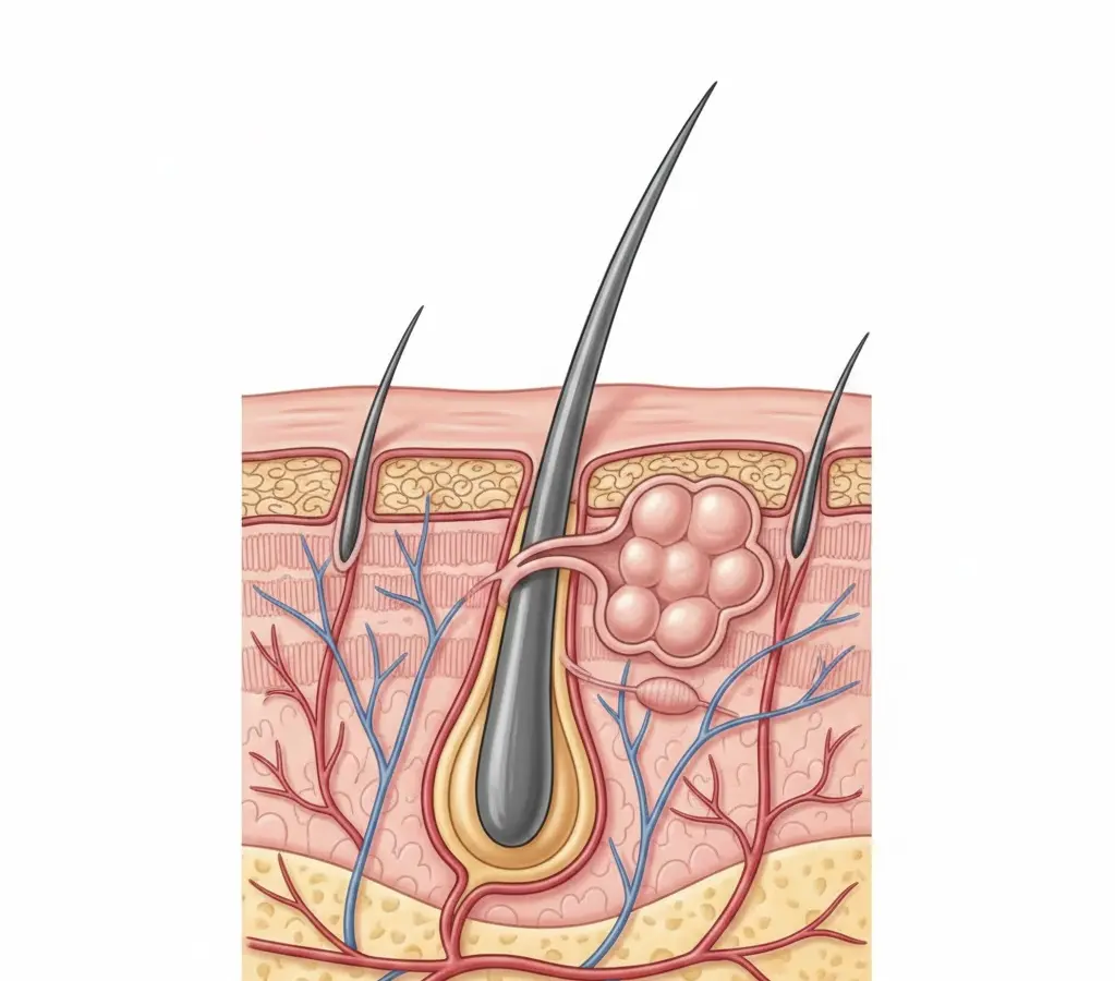 Кожа головы содержит огромное количество сальных желез, основной задачей которых является выработка кожного сала, или себума. Этот секрет необходим для создания естественного защитного барьера, который предотвращает пересыхание кожи и защищает структуру волоса от внешних повреждений.